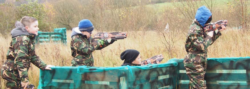 Outdoor laser tag is different from indoor laser tag due to the game zones and areas being the same as paintball. The areas are situated on the fields near Twechar and so the surrounding area is beautiful. The weapons fire beams of light at the other team's weapons and remove lives instead of covering them in painful paint blasts. This means that protective equipment is not needed and you do not have to purchase extra balls when you run out.